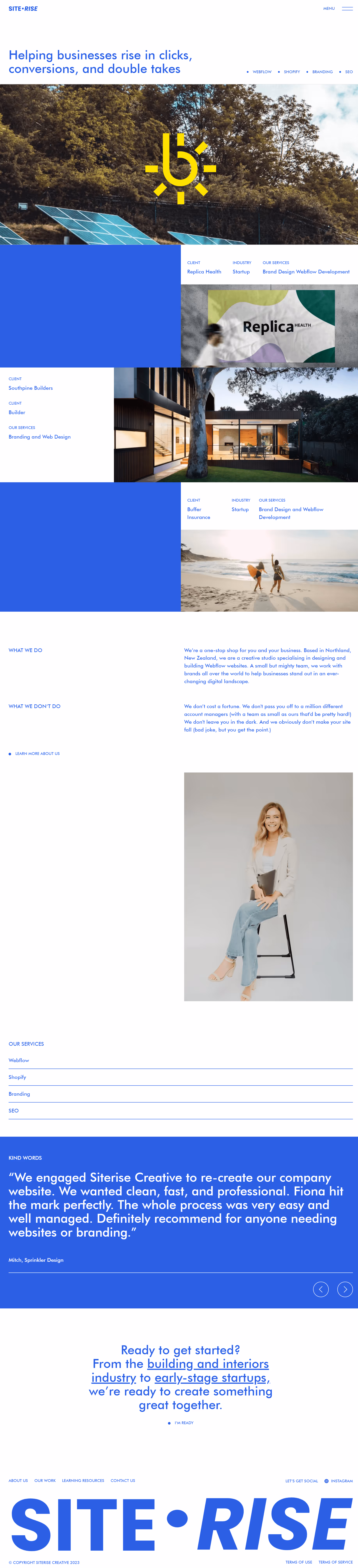 siterise has established itself as a pivotal player in the agency industry, offering comprehensive services that elevate brands and businesses in the digital landscape. With a specialization in designing and building Webflow websites, their small yet dynamic team collaborates with diverse clients worldwide, providing tailored solutions that emphasize clean aesthetics, swift functionality, and professional finesse. By fostering transparent communication and delivering on-point results, siterise continues to empower businesses, from startups to established enterprises, in standing out amidst the ever-evolving demands of the digital world.