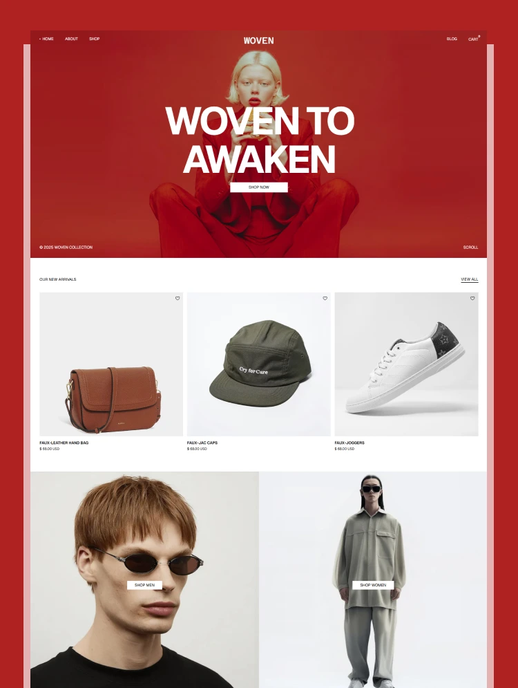 Woven Wear is a modern Webflow eCommerce template for clothing and fashion brands.