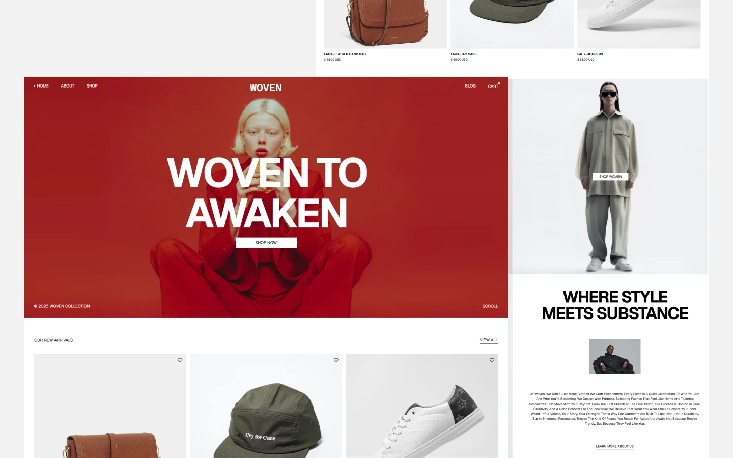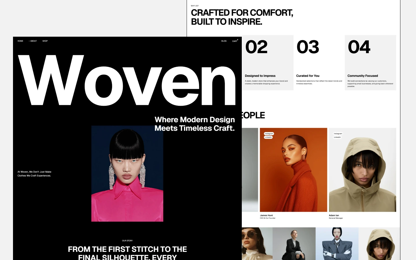 Woven Wear is a modern Webflow eCommerce template for clothing and fashion brands.